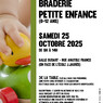 Le samedi 25 octobre 2025, de 9h à 14h, Salle Oudart - Rue Anatole France A lieu une braderie petite enfance (0-12 ans).