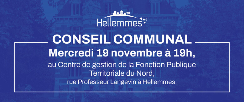 La prochaine séance plénière du Conseil Communal aura lieu le mercredi 19 novembre à 19h.Cette séance, ouverte au public, se tiendra au Centre de gestion de la Fonction Publique Territoriale du Nord, rue du professeur Langevin à Hellemmes