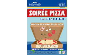 Le mercredi 29 octobre, de 18h à 21h, pour les 19-29 ans, c'est soirée pizza organisée par la Maison de la Jeunesse !
